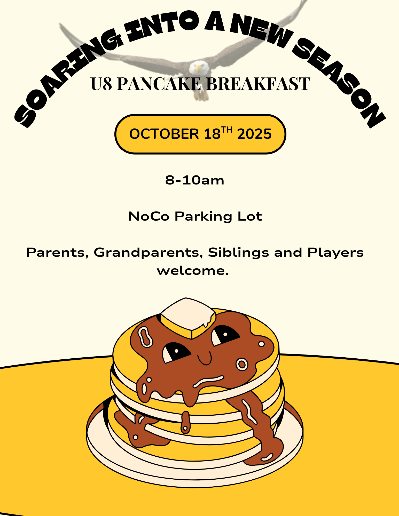 U8 players, parents, siblings, and grandparents are invited to join us for a fun pancake breakfast! Come hungry and ready to enjoy some team time together.